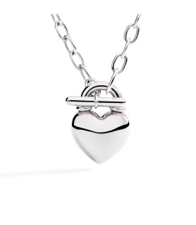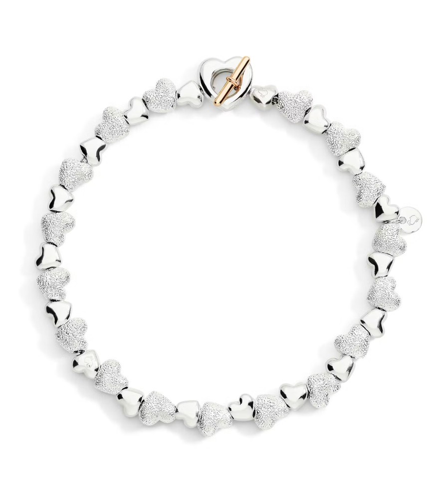DoDo bracelet Heart with plain and diamond-cut components and clasp cover in sterling silver 925, t-bar in rose gold 9kt, chain in sterling silver 925 and closure ring in steel. Steel needle included
