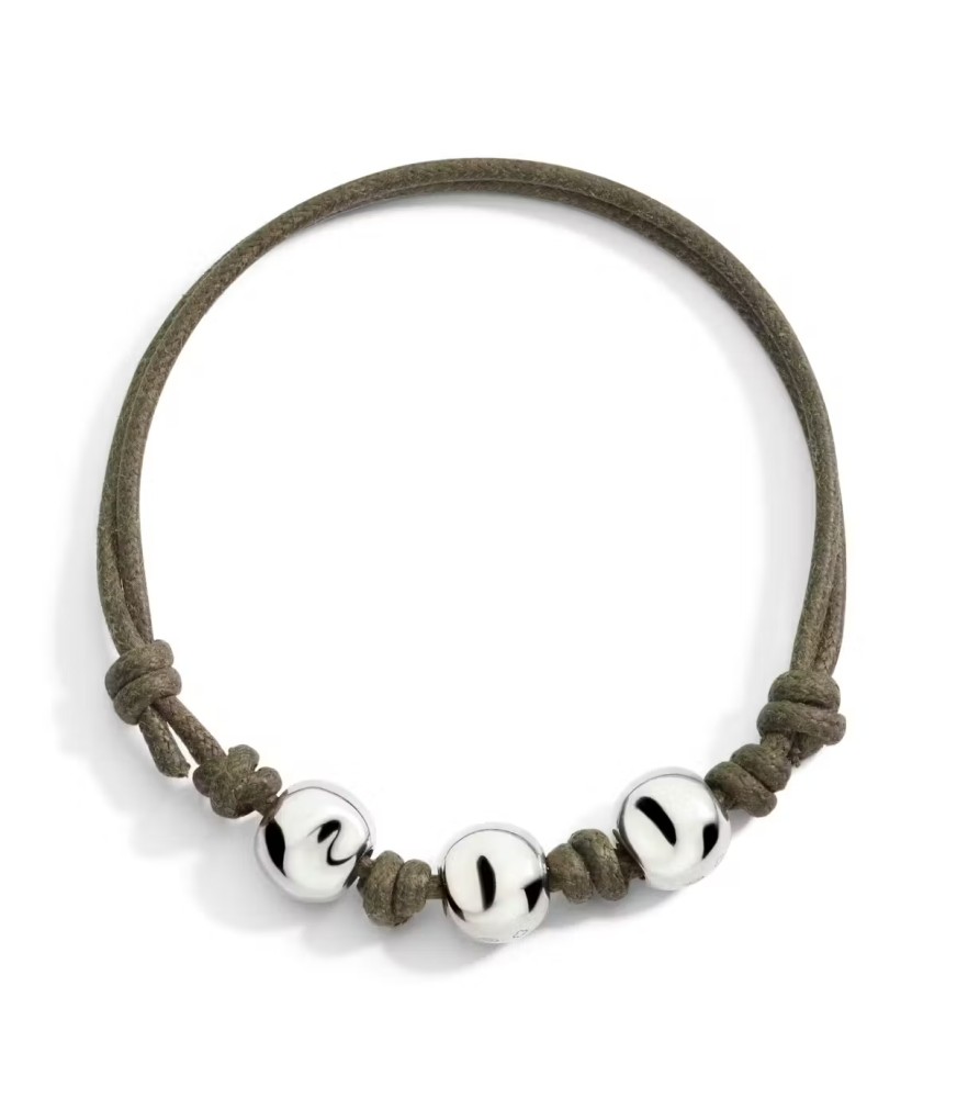DoDo cord bracelet military green thick with 3 components pepita in silver. Silver clasp.